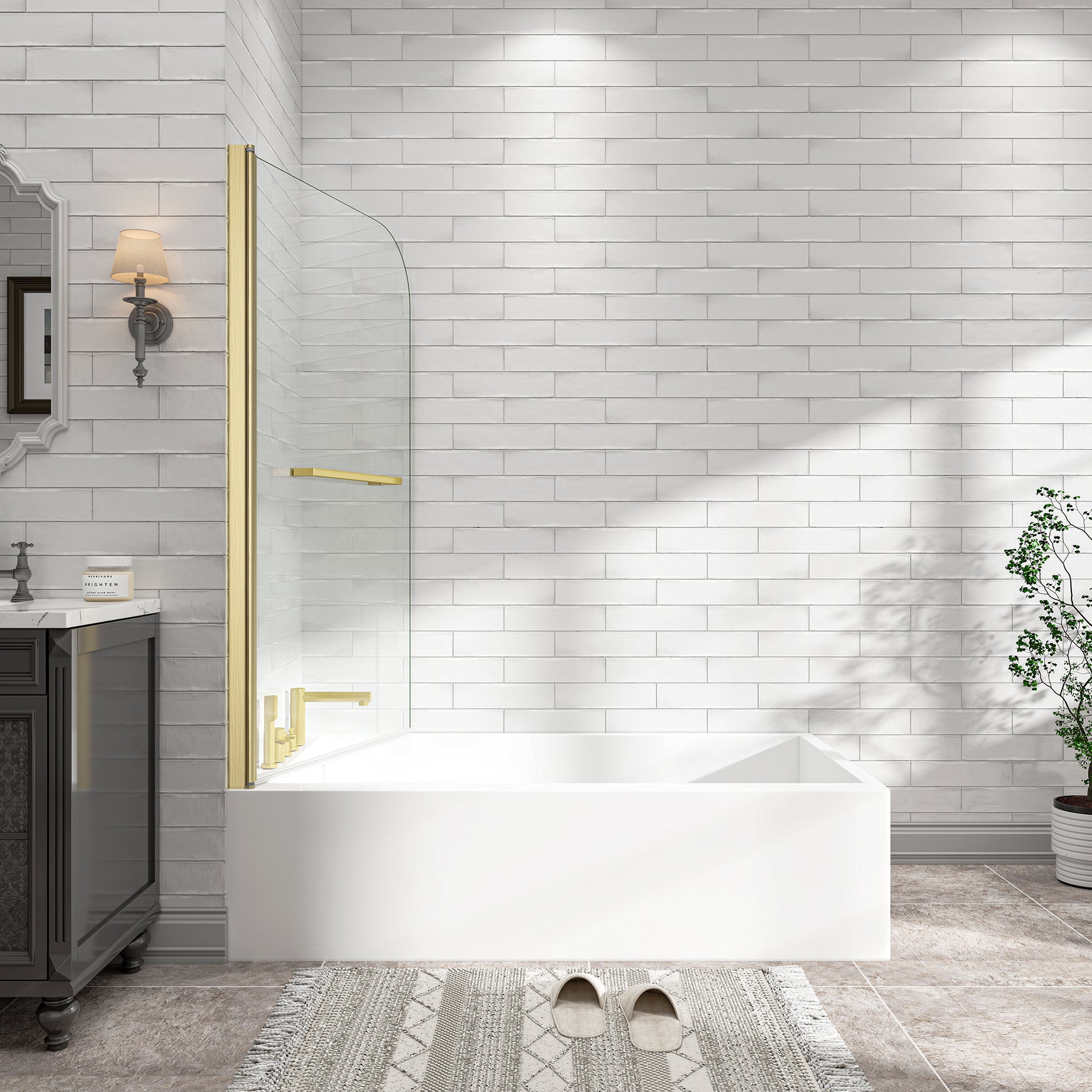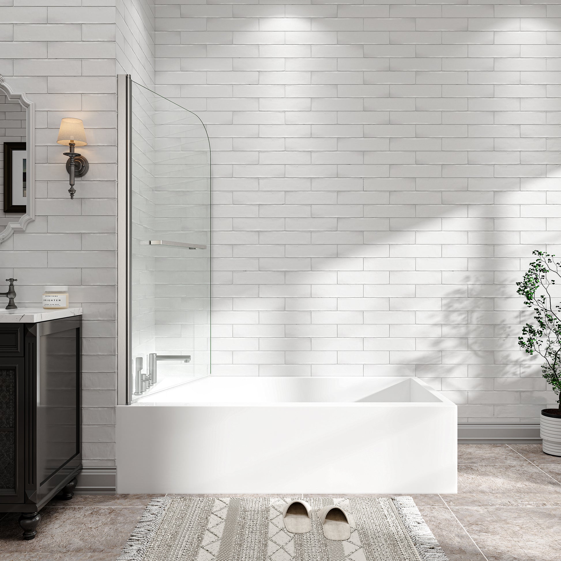 Transform your standard bathtub into a modern, open-concept shower space with the KPUY 55" H Frameless Bathtub Screen. Unlike clunky sliding doors or sticky shower curtains, this sleek glass panel features a flexible 180° Pivot lifting shaft, allowing the door to swing smoothly inward or outward for effortless entry and exit.
